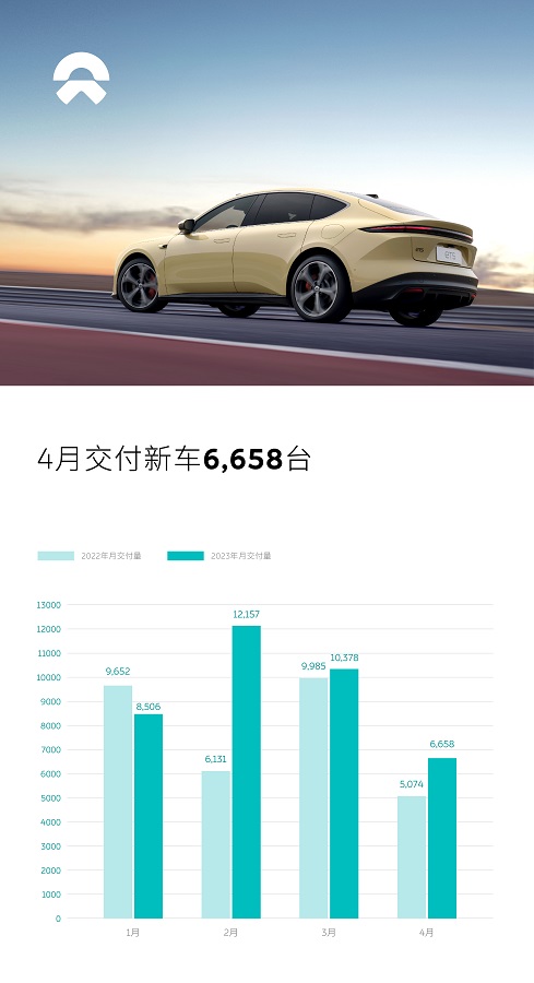 数据显示,2023年4月,蔚来汽车交付新车6658辆,虽同比增长31.2%,但环比下降35.8%。今年1—4月,蔚来交付量分别为8506辆、12157辆、10378辆、6658辆,交付量继一月份之后再次下滑到一万辆以下。小鹏汽车4月交付新车7079辆,而今年1月—3月的交付量分别为5218辆、6010辆、7002辆。