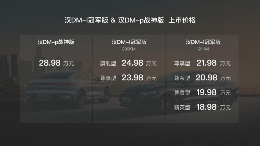汉DM-i依靠着硬核产品实力快速上量。如今,全面焕新的汉DM-i冠军版,秉承“油电同价”的市场策略,乘势而上,战略挺进二十万内。