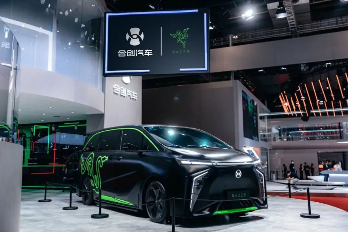 在前不久的上海车展,合创汽车亮相了与全球知名电竞设备品牌Razer雷蛇、电竞战队EDG跨界共创的联名产品——合创V09 RAZER版,这也是合创汽车与雷蛇潮改共创的首款作品。