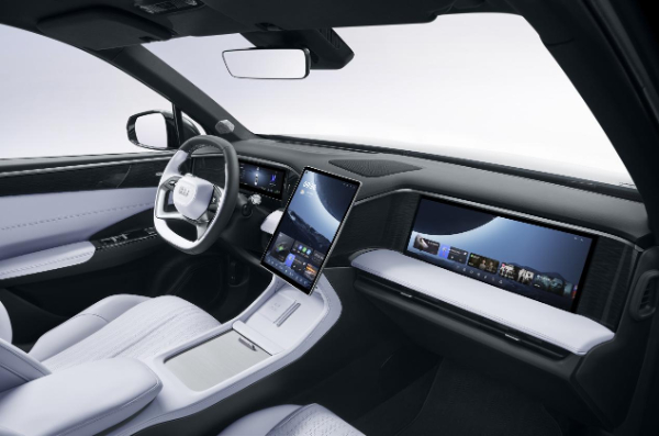 吉利银河L7标配配备10.25英寸仪表+13.2英寸中控屏+16.2英寸副驾屏三块大屏,屏幕之间可实现智能交互。语音唤醒速度仅需0.5秒,支持全场景可见即可说、四音区识别、深度连续对话。