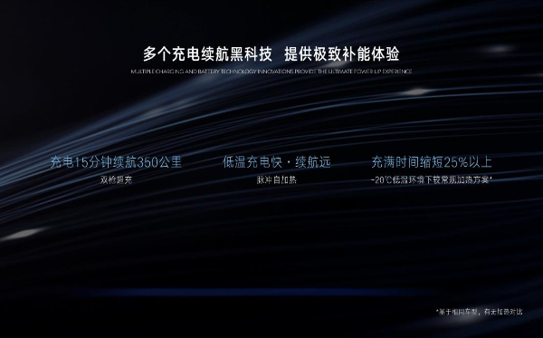 除了服务品质提升、服务维度更广外,腾势汽车开发出多个补能黑科技,从效率上缓解用户的充电焦虑问题。腾势N7搭载全球首创双枪超充技术,可实现充电15分钟续航350公里,并具备防止冬天馈电的低能高效的智能脉冲自加热技术等,摆脱电量束缚,实现用户出行的最大自由。