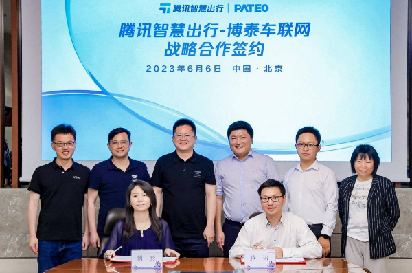 6月6日,腾讯智慧出行与博泰车联网签署战略合作协议,双方将围绕云平台、智能座舱、智驾地图、智能营销、出海等领域开放合作,融合各自在产品、技术、资源等方面的优势,共同为汽车行业客户提供领先的解决方案,促进行业创新发展。