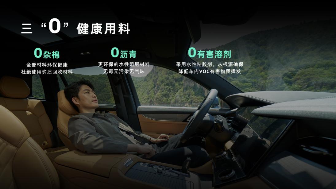 安全不止于外,更修于内。领克09首款五座车型的深林健康座舱拥有多重主动净化功能,配合内饰的三“0”健康用料——0杂棉、0沥青、0有害溶剂,让每一位用户畅享健康环保的出行体验。
