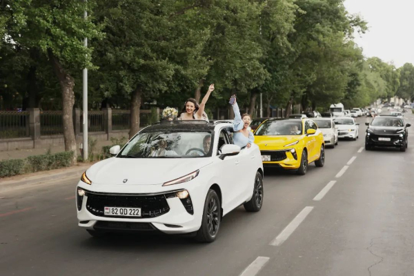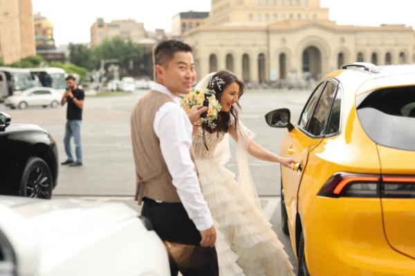 6月18日,一组由东风风行T5 EVO组成的“幸福婚车队”现身亚美尼亚大街,为中国成都小伙“汪汪”与其妻子玛丽亚的婚礼保驾护航,迎接幸福时刻。这也是东风“幸福婚车”首次走出国门,化身“幸福大使”,向海外同胞提供温馨服务,与广大网友共同见证美好爱情。