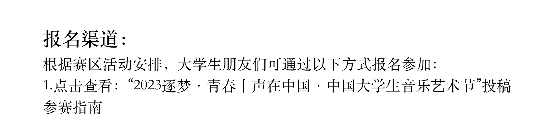 根据赛程设置,“2023逐梦·青春丨声在中国·中国大学生音乐艺术节”分为五个阶段,包括全国海选、城市赛、全国半决赛、总决赛以及最终的共创盛典。目前校园海选赛已经宣告圆满结束,第二阶段城市赛正在火热进行中。校园赛的晋级选手与各城市线上赛区最终投票数前四强的选手携手参加城市赛,展开更高水平音乐实力的碰撞与青春活力的比拼,这一阶段的赛事注定将更加精彩。