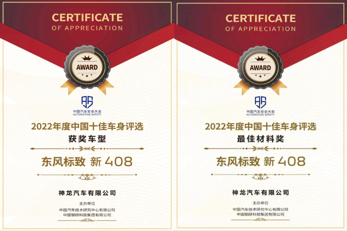 在2022年中国汽车安全大会上,新408凭借在车身材料、车身工艺、车身结构上的高品质表现,一举斩获“2022中国十佳车身”与“最佳材料”两项大奖。另外,在去年中汽研儿童优先(绿色座舱)认证中,新408还成为首款通过“儿童优先(绿色座舱)认证”的十万级家轿。