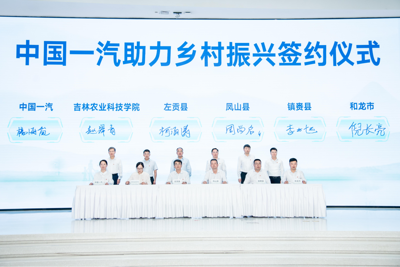 在发布会上,中国一汽还分别完成了助力乡村振兴合作和党建共建两大重点项目的协议签署。在乡村振兴合作上,中国一汽联合吉林农业科技学院,将结合帮扶地区发展需要,围绕乡村振兴最重要的产业发展,充分发挥自身资源优势,与中国一汽帮扶地区镇赉县、和龙市、凤山县、左贡县开展合作,深度助力帮扶县产业振兴。在党建共建方面,中国一汽机关党委与长春汽开区党工委签署“红映初心 旗享银龄”党建共建协议,将为长春汽开区提供助医支持、助医设备支持并开展民生服务项目,全方位落实央企社会责任。