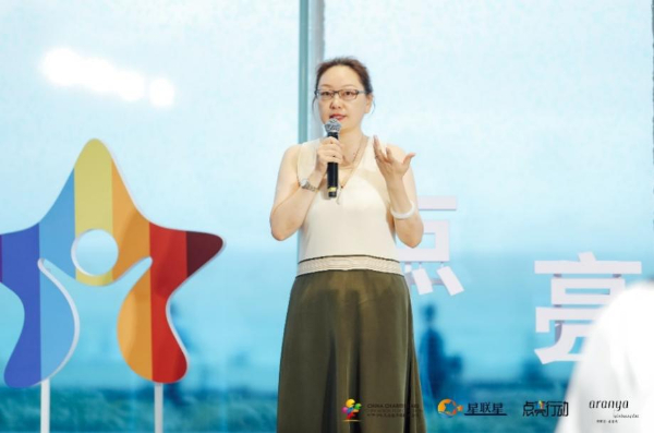 当晚多位嘉宾上台,由倡导全社会进一步包容与接纳孤独症儿童延伸,共同探讨孤独症公益事业的发展,并就如何进一步推进孤独症儿童的社会融合进行分享与互动。中华少年儿童慈善救助基金会项目一部执行主任兼星联星项目负责人邢榆煊为到场来宾介绍了中华儿慈会及自主品牌项目星联星的公益理念。