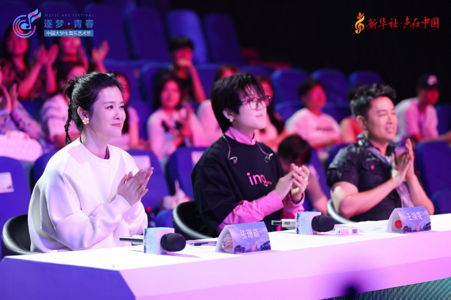 梦想指引方向,只需勇敢前行。比赛期间,三位评委对选手们的演唱给予了充分认可,也提出了专业而宝贵的建议。他们鼓励青年选手们不断提高音乐水平、坚守热爱与初心,在音乐的道路上精益求精、不断前行。比赛期间,作为评委的王靖雯和评委张珊萌分别演唱歌曲,为所有逐梦路上的选手加油打“call”。