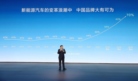 王传福表示,新能源的发展趋势是不可逆的,在新能源汽车的变革浪潮中,中国品牌大有可为。王传福预测2025年中国市场新能源汽车渗透率将超60%,中国汽车品牌市场份额将提升至70%,实现跨越式发展。同时,中国有创造世界级汽车品牌的基础和实力,中国汽车产业必将诞生一批令人尊敬的世界级品牌。