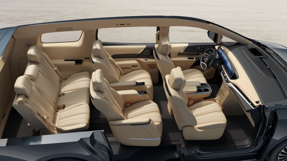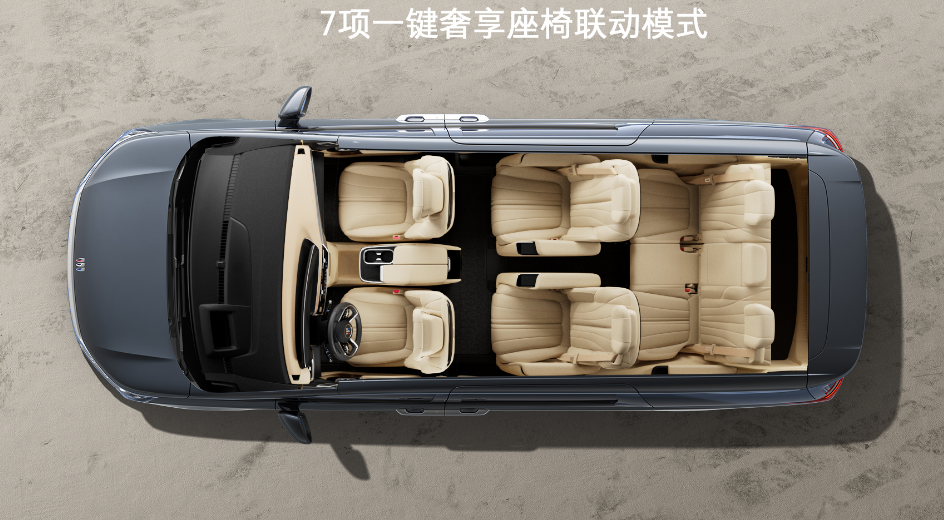 值得一提的是,七座臻享款第二排凭借电动横滑设计,让两个座椅可以独立横向移动,既能靠拢后让乘客交流亲密无间,也可向两侧分开形成190mm中央宽敞通道,让进出第三排更为便捷。根据用户高频出行场景,七座臻享款提供7项一键奢享座椅联动模式,包括三排便捷上/下车、后备箱延伸、休憩、舒适、近享、入眠模式,通过前排中控屏、顶衬旋钮或二排扶手屏控制,让用车生活更惬意舒心。新车后备箱标准容积为604升,能轻松放置4个28吋行李箱;当第三排座椅最大化前移,则可形成纵深1112mm、容积1901升的超大空间,适配更多用车场景需求。