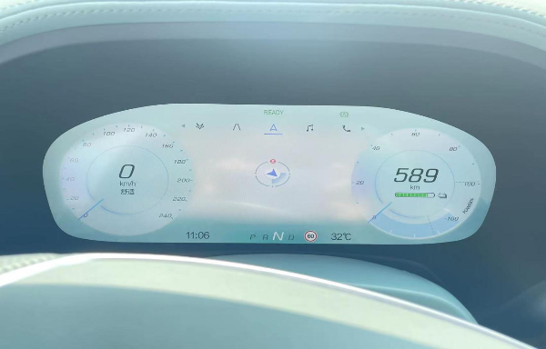 阿尔法T森林版配备了AR HUD成像技术,在挡风玻璃上可以清楚且实时看到车辆行驶速度,该显示为驾驶者提供了便利,能够时刻判断行车速度,尤其是在限速路段,驾驶者可通过该显示了解并立刻调整车速。而在下方仪表盘上,一些显示也为新手或对道路方向不敏感者提供了便利,比如显示于正中央的电子指南针,它可以清晰指出车头朝向,这样一来,驾驶者无需自我辨别就可以知道车头朝向。