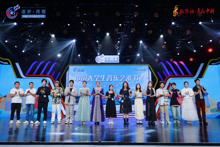 歌声“乐”动,梦想绽放。总决赛期间,中国大学生音乐艺术节新生代知音召集人、歌手王靖雯,中国内地女歌手许飞等知名音乐人也将来到现场担任评委,为每一名参赛选手加油,为每一场音乐比拼喝彩,与观众们一同逐梦觅知音!8月28日14:00,全国总决赛比赛盛况将通过新华网客户端等平台同步直播,热力无限的青春音乐盛会即将上演,让我们共同期待逐梦最强音的诞生。