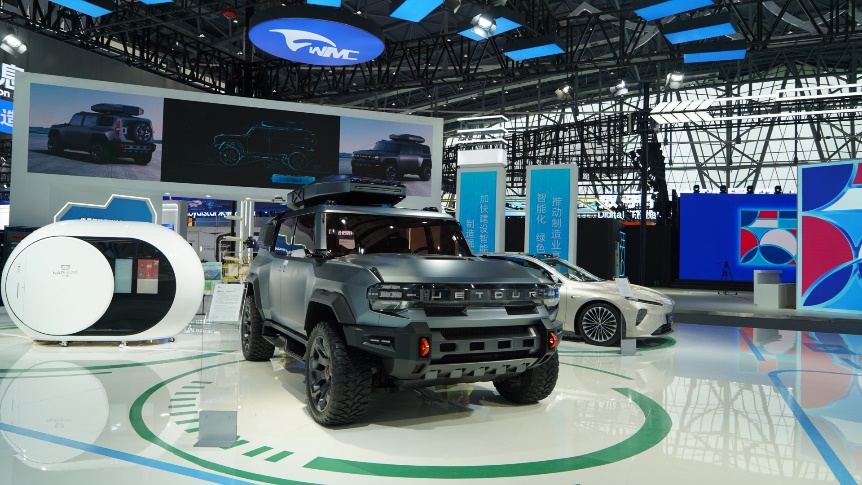 在为期5天的世界制造业大会期间,奇瑞集团展出了捷途T-3概念车、第三空间智能座舱、星纪元ES共三款展品。其中,越野概念车捷途T-3亮相主序厅,它不仅拥有科幻气质的硬派设计,采用非承载式车身,还搭载了智能矢量控制四电机等硬核技术,展示了未来电气化硬派越野市场的全新技术解决方案。