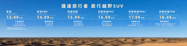 据了解,捷途旅行者此次推出两款搭载1.5TD+7DCT动力组合、三款搭载2.0TD+7DCT动力组合以及一款搭载2.0TD+8AT动力组合共六款车型,官方指导售价区间为13.99-18.49万元。