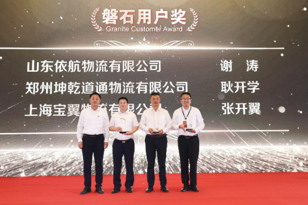 一汽解放动力总成事业部党委副书记、纪委书记、工会主席王志宇为“磐石用户奖”获奖用户颁奖