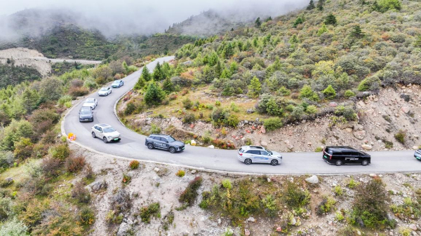 在高原山地极限能耗比赛中,参赛车辆按照满载质量行驶,途径香格里拉、贺龙桥、白马雪山垭口、纳帕海,累计行驶360公里,蓝电E5经受住了高原、满载、海拔爬升等多重严苛挑战,以插混SUV全组别高原山地极限能耗冠军的亮眼成绩圆满完赛。