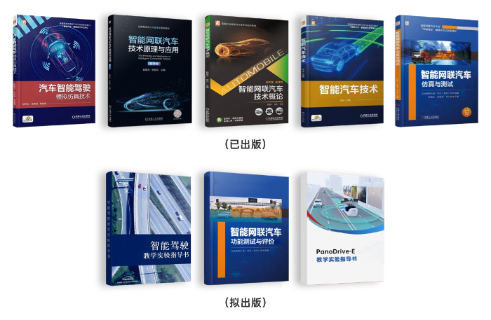 机械工业出版社还同时出版或计划出版多套相关专业教材,与“虚拟仿真教学软件”及“虚拟仿真科创平台”形成了良好的配套,对于高质量提升智能网联汽车理论与实践相结合的人才培养方案有着积极意义。