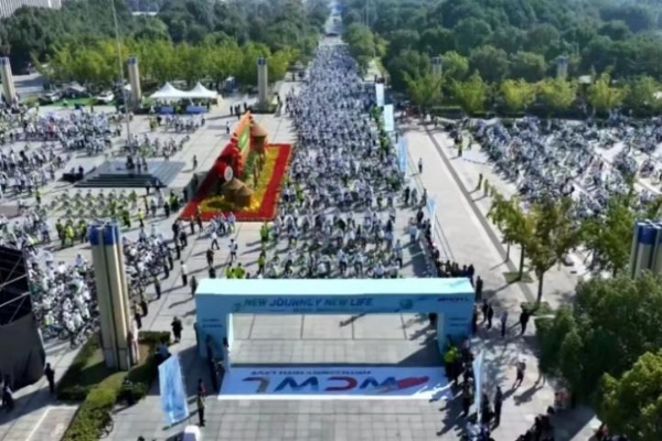 在当天奇瑞举办的2023全球汽车生态博览会绿色骑行活动中,来自全球的两千名骑手还开展了绿色骑行活动,传播绿色环保理念。世界自然保护联盟代表Giuditta Andreaus对奇瑞积极参与社会公益事业、创造更多社会价值的举动表示了敬意。