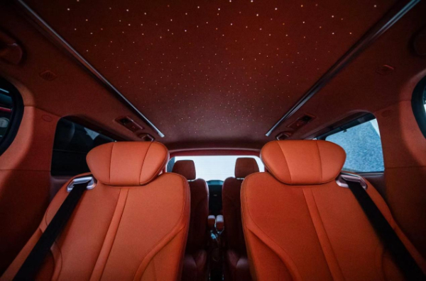 全车采用专属豪华六座布局,全部座椅都支持电动调节,并且配备了加热、通风功能,可选装的全尺寸航空座椅具备12向调节、一键躺平、10点按摩共6种按摩模式以及无线充电等功能,奢华程度超越想象;全球顶级Harman/kardon豪华音响系统升级为20扬声器,增加的4只顶棚扬声器,实现了3D立体环绕效果,增加了音乐的空间感;动态星空穹顶设计,拥有超20项专利,随时随地开启“星空漫步宇宙邀游”。