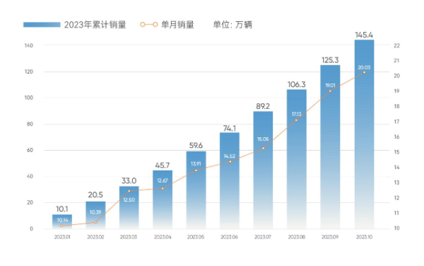 10月份,奇瑞集团整体销量、各乘用车品牌销量增速都超过了50%,超过行业速度实现“加速跑”,其中高端品牌星途更是实现了翻番式增长。10月份,奇瑞集团有2款月销过两万产品、4款月销过万产品——瑞虎8、瑞虎7、捷途X70、艾瑞泽8、瑞虎5x、欧萌达分别以22,987辆、26,224辆、15,279辆、14,065辆、12,448辆、11,459辆的成绩,成为拉动集团销量增长的明星组合。刚刚上市1个月的捷途旅行者,订单数已超过3.5万,成为受到市场欢迎的热门车型。在10月份举行的2023日内瓦国际车展上,星途星纪元ES、星纪元ET等全球化高端车型惊艳亮相,为新车上市造势预热;加上神行超充电池、LION AI大模型平台首发搭载星途星纪元,将助力奇瑞集团在新能源赛道上提速奔跑。