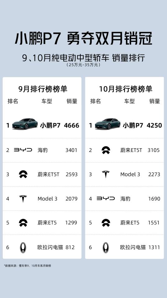 P7车系订销两旺,夺得25-35万级纯电中型轿车销量第一