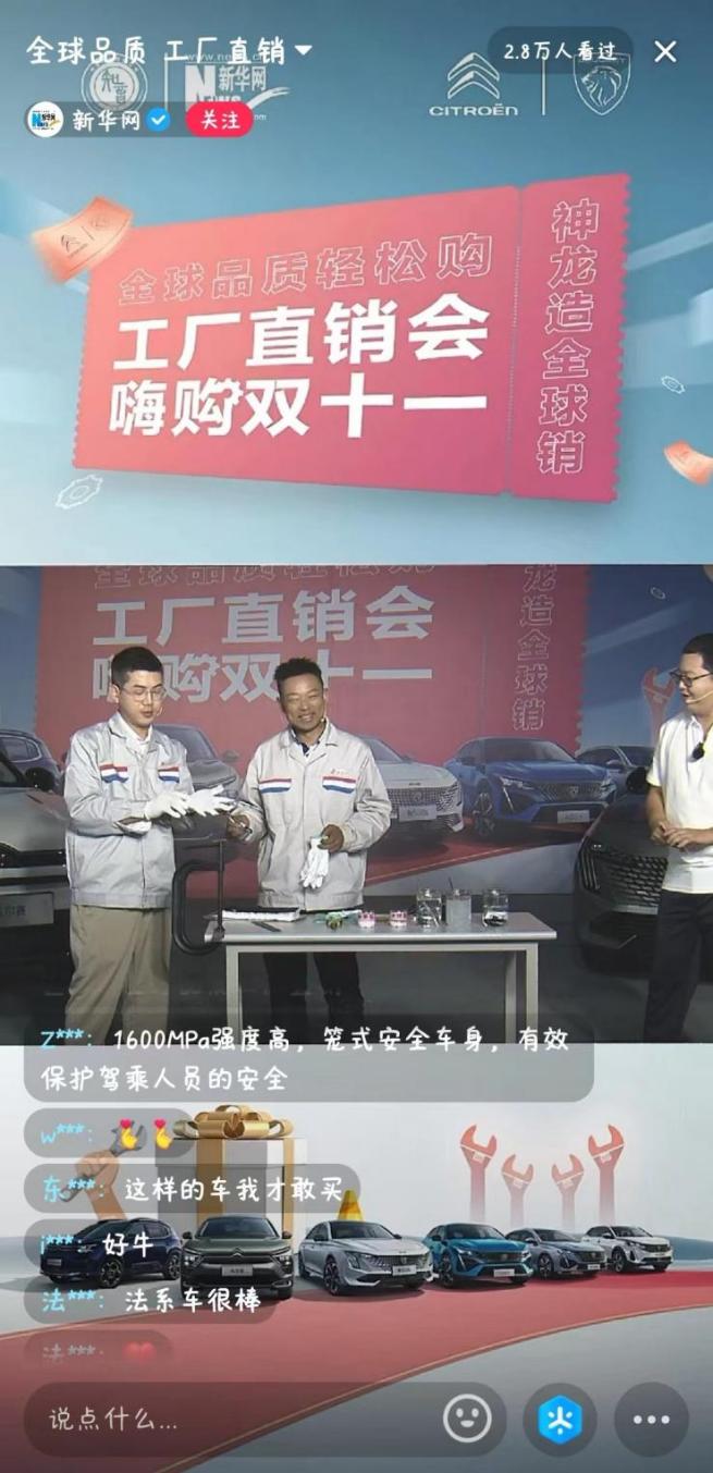 作为神龙汽车“工厂直销会 嗨购双十一”系列直播中的重要一场,11月11日晚,神龙汽车携东风标致、东风雪铁龙系列车型亮相新华网抖音官方直播间,为广大网友开启了一场以“全球品质 工厂直销”为主题的汽车直播盛宴。本场直播设置了品质知音、生活知音、服务知音、车型讲解四大场景。共有约33.5万名网友通过直播间感受到了神龙汽车的全球品质、良心价格,个性、时尚、优雅的品牌调性以及“双十一”诚意满满的福利。本场直播也将神龙汽车为期12天的“嗨购双十一”活动推向了高潮。