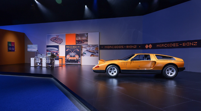 不止于此,C 111实验车更是以科技赋能美学的典范。鸥翼门不仅是高强度轻量化车身的绝佳解决方案,更是梅赛德斯-奔驰传奇ICON的重要美学特征;玻璃纤维强化塑料以其绝佳的轻量化和可塑性,为C 111实验车塑造了独树一帜的前卫造型,并实现了领先的空气动力学效能。同时,C 111实验车还是世界上第一辆完全在计算机上设计的车,其开发周期因此缩短大约4个月。凭借美学与科技的相互成就,C 111实验车在70年代定义了跑车的时代风潮,为跑车的发展指明了方向。