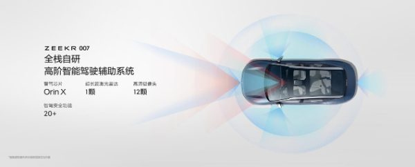 智驾方面,极氪007首发应用极氪全栈自研的高阶智驾解决方案,标配NVIDIA DRIVE Orin SoC智能驾驶系统级芯片,算力高达508 TOPS,搭载1个激光雷达、12颗高清摄像头和5个毫米波雷达等顶级硬件,更有20多项功能全面守护,提高感知能力及安全冗余。此外,极氪007高速NZP领航功能,交付即上线,全国可用,为更多用户带来超越期待的高阶智驾体验。