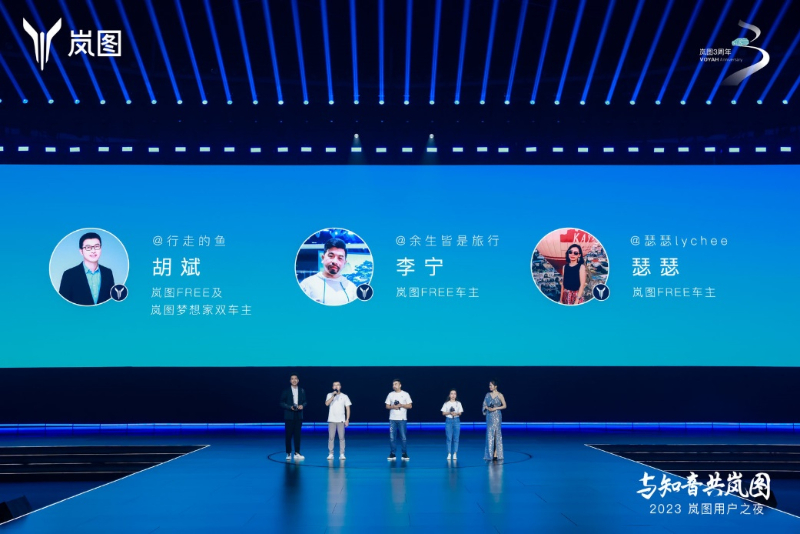 岚图用户之夜,是岚图为用户专属定制的品牌超级IP,是一场品牌与用户零距离的共创活动。来自全球5000多位岚友齐聚一堂,成为岚图用户之夜的主角。场内,三位用户代表受邀上台,倾情讲述岚友们和岚图相知、相识、相伴的温暖故事,从不同角度体现岚图与用户的相互陪伴、相互成就;场外,由用户自行设计和运营的充满地域风情的共创街区,打造颇具岚图特色的“家”年华,热闹非凡。