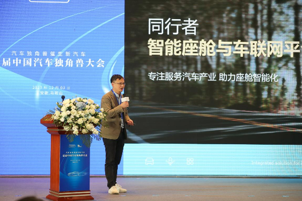 深圳市同行者科技有限公司副总裁陈求先向参会嘉宾介绍了该公司在以智能语音交互为核心能力的汽车座舱智能等领域的产业实践。