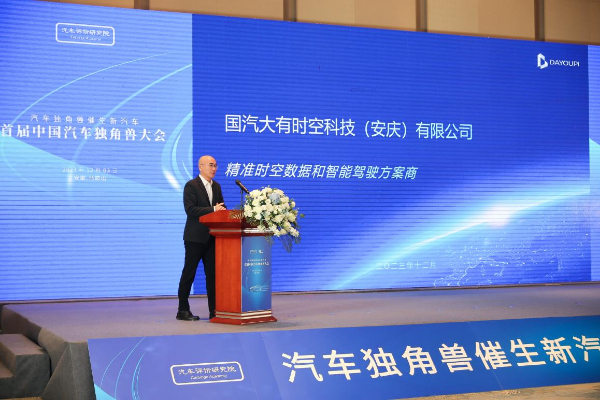 国汽大有时空科技(安庆)有限公司联合创始人、CEO韩建新介绍了公司的基本情况。他表示,大有时空是国家智能网联汽车创新中心孵化的科技型企业,公司可为智能驾驶汽车和智能物联终端提供综合的解决方案和时空数据服务。