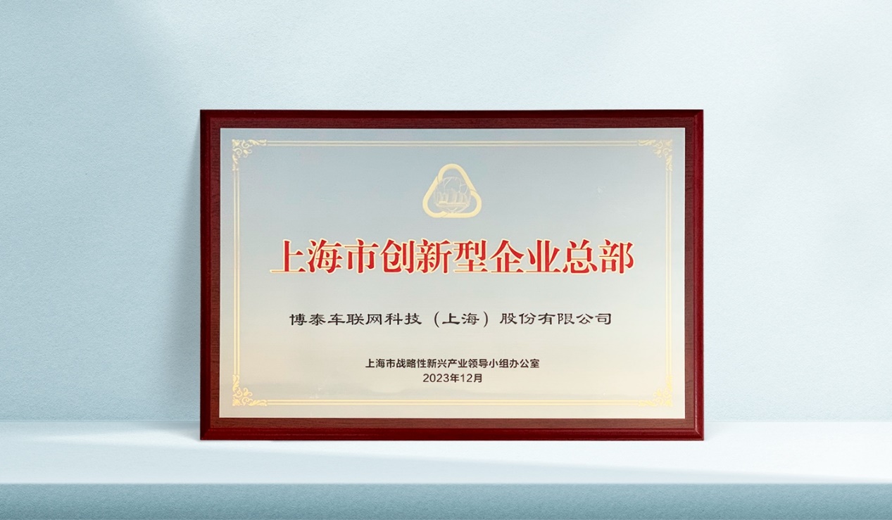 12月5日,第一批上海市创新型企业总部授牌仪式在沪举行,博泰车联网作为人工智能领域代表名列其中。