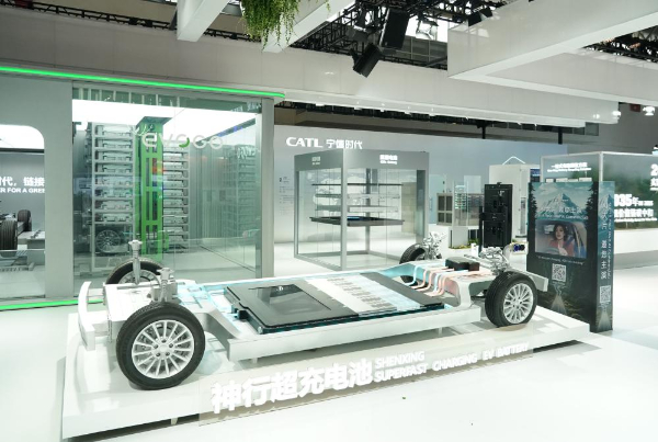 这是2023年11月26日在首届中国国际供应链促进博览会智能汽车链展区拍摄的宁德时代展位。新华社记者任超摄