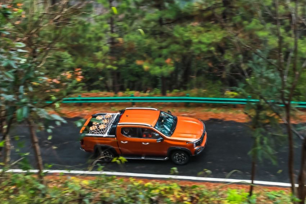 长安猎手采用双叉臂前独立悬架+五连杆整体桥后悬架结构,操控精准,在高速转弯时还是能较好地控制车身姿态。得益于增程式动力模式,相较于传统燃油皮卡,长安猎手在NVH性能上具有一定优势。根据官方介绍,长安猎手百公里时速车内63分贝,增程器介入前后NVH相差≤2dB。
