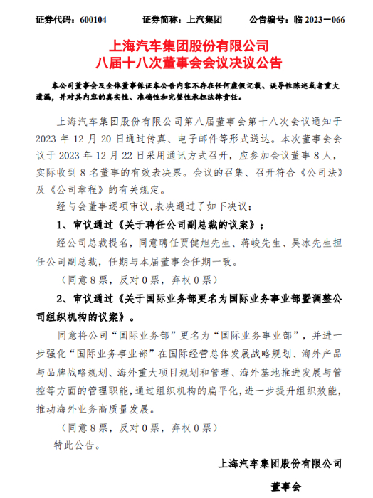 12月22日,上汽集团宣布人事任命,上汽大众总经理贾健旭、智己汽车CEO蒋峻、上汽乘用车分公司总经理兼飞凡汽车CEO吴冰升任上汽集团副总裁。据了解,三位新上任的高管均为“70后”,他们上任后将致力于进一步加快上汽集团新赛道创新转型步伐,推动新能源三年行动计划扎实落地。