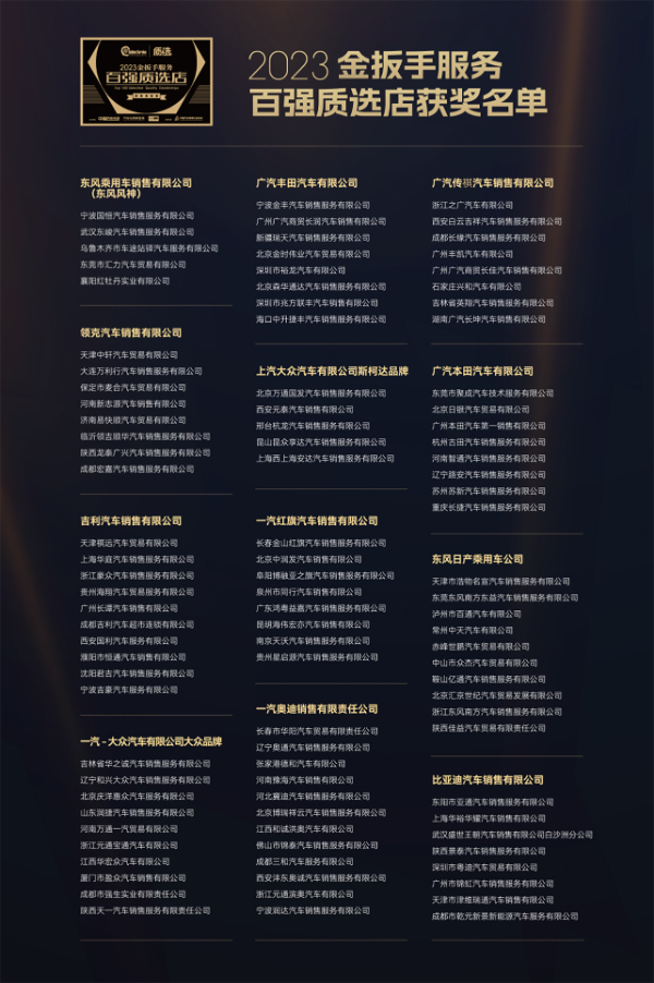 举办2023金扳手服务百强质选店评选