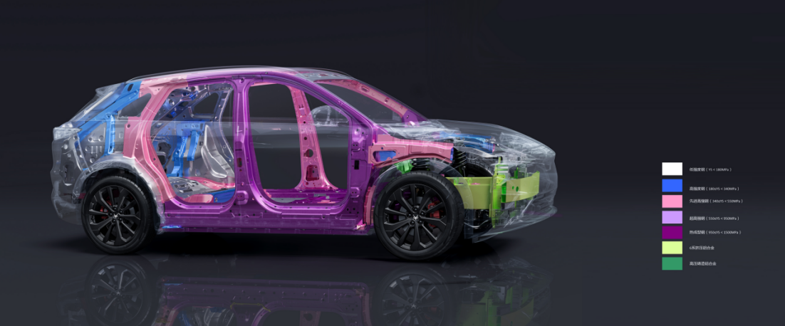 阿尔法T5打造的“铠甲车身”,高强度钢和铝合金车身占比高达81.0%,在热成型钢比例上,阿尔法T5达到了30.08%,材料强度达到1500 MPa,所有涉及到车内乘员保护的关键零件的壁厚都做了加强,有的甚至加强了30%-50%,车身抗扭刚度更是达到了47119Nm/deg,最大程度保持乘员舱完整性,保护车内乘员的安全。