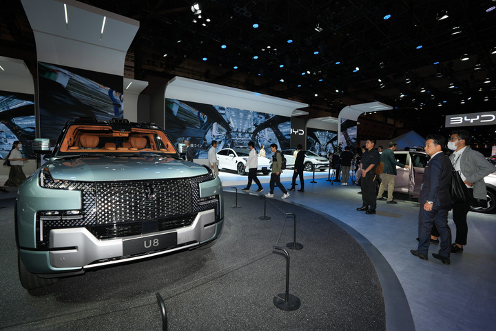 (资料图)2023年10月26日,人们在日本东京举行的日本移动出行展上参观展出的比亚迪仰望U8新能源汽车。
