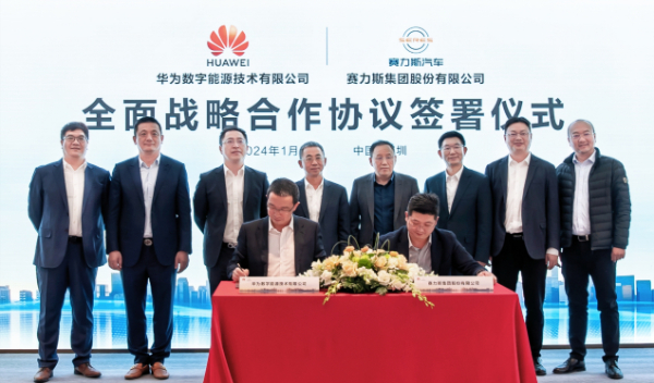 1月4日,赛力斯集团股份有限公司(以下简称“赛力斯集团”)与华为数字能源技术有限公司(以下简称“华为数字能源”)在深圳签署全面战略合作协议。