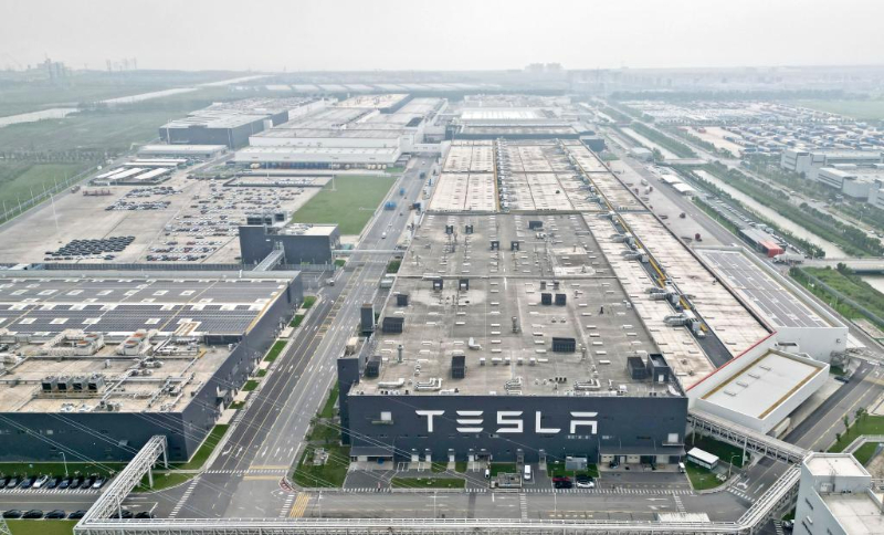 这是2023年9月26日在中国(上海)自由贸易试验区临港新片区拍摄的特斯拉上海超级工厂(无人机照片)。(新华社记者刘颖摄)