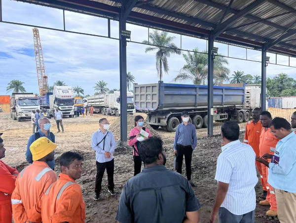 图:东风人员在尼日利亚CNG牵引车工地现场与客户交流(图片来源 东风公司)