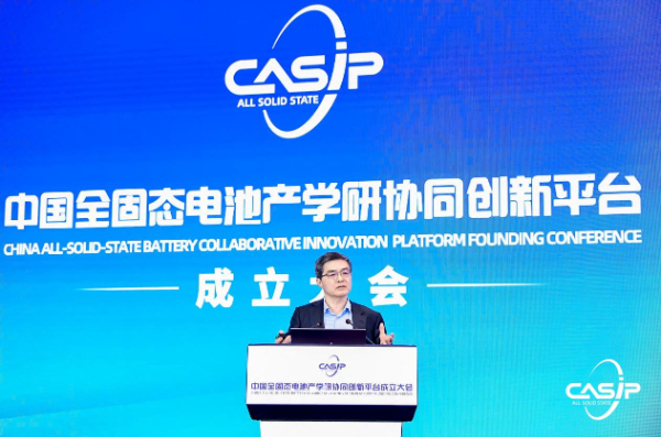 2024年1月21日,“中国全固态电池产学研协同创新平台”(CASIP)在北京举行揭牌仪式,来自主管部门、行业组织、企业、高校、科研机构以及金融与投资机构代表200余人参加会议。中国科学院院士、清华大学教授欧阳明高在会上作了题为 “全固态电池的研发现状与产学研协同创新的前景展望”的主旨发言,分析阐述了全固态电池的研发现状,以及对产学研协同创新的前景展望。