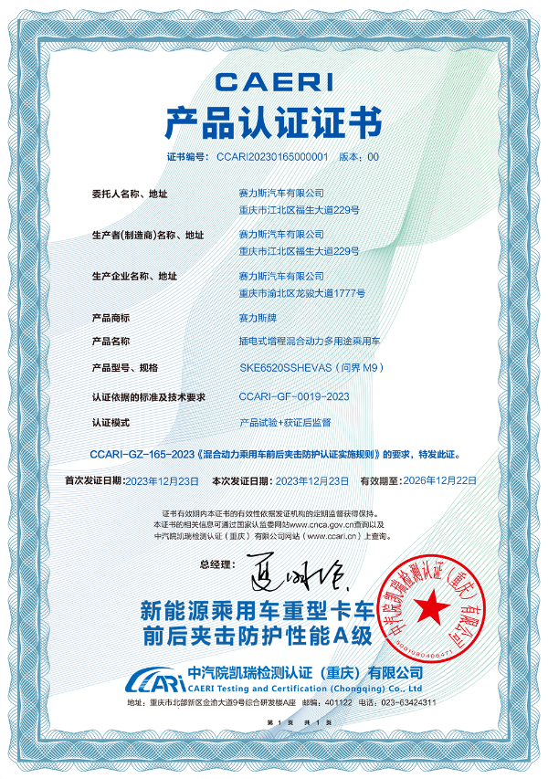 2月17日,央视中文国际频道(CCTV-4)《中国新闻》栏目报道了工业和信息化部就乘用车后碰撞安全要求征求意见,并报道了AITO问界M9参与中国汽研SUPER CRASH“重型卡车前后夹击工况”的安全试验挑战。此次挑战中,AITO问界M9表现出色,六项全优,获得“新能源乘用车重型卡车前后夹击防护性能A级”认证。