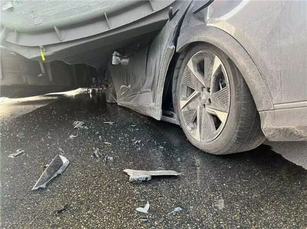 近期在山西忻州发生的一起交通事故中,一辆载着49吨煤炭的大货车在转弯时突然失控侧翻,巨大的车身瞬间压在了一辆长安深蓝S7轿车上。