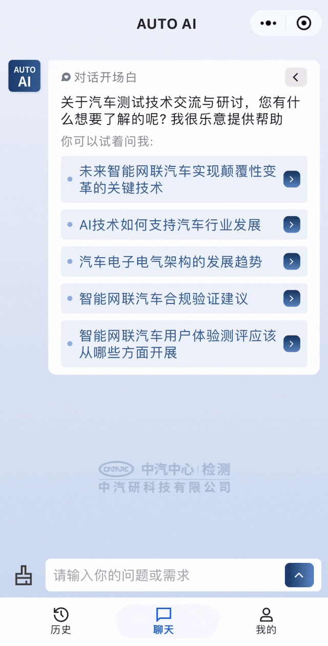 3月15日,在智能网联汽车技术研讨会(华南)期间,中汽研科技有限公司(以下简称“中汽科技(深圳)”)发布了专注于汽车技术场景的人工智能AI应用“AUTO AI”。该应用的发布是中汽科技(深圳)积极落实委“AI赋能 产业焕新”要求的重要举措,标志着中汽科技(深圳)在智能化进程中迈出了重要一步,将为汽车从业者提供更加高效、便捷的服务体验,推动汽车行业向更加智能化、个性化方向发展。