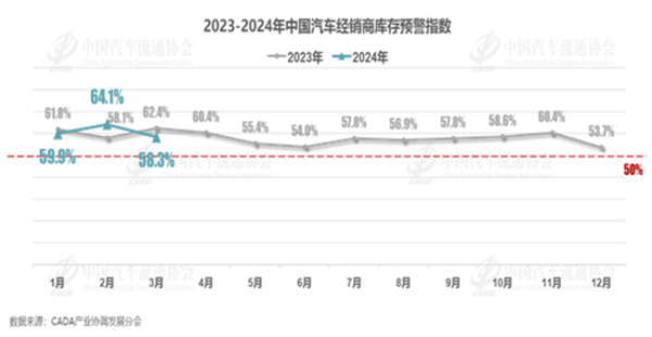 据中国汽车流通协会日前发布的数据,3月,乘用车终端销量预计为165万辆,略低于预期。流通协会表示,春节后车市再次开启价格战,多家车企宣布降价,降价措施在一定程度上拉动消费者需求,新车库存有所下降。3月,中国汽车经销商库存预警指数为58.3%,同比下降4.1%,环比下降5.8%。