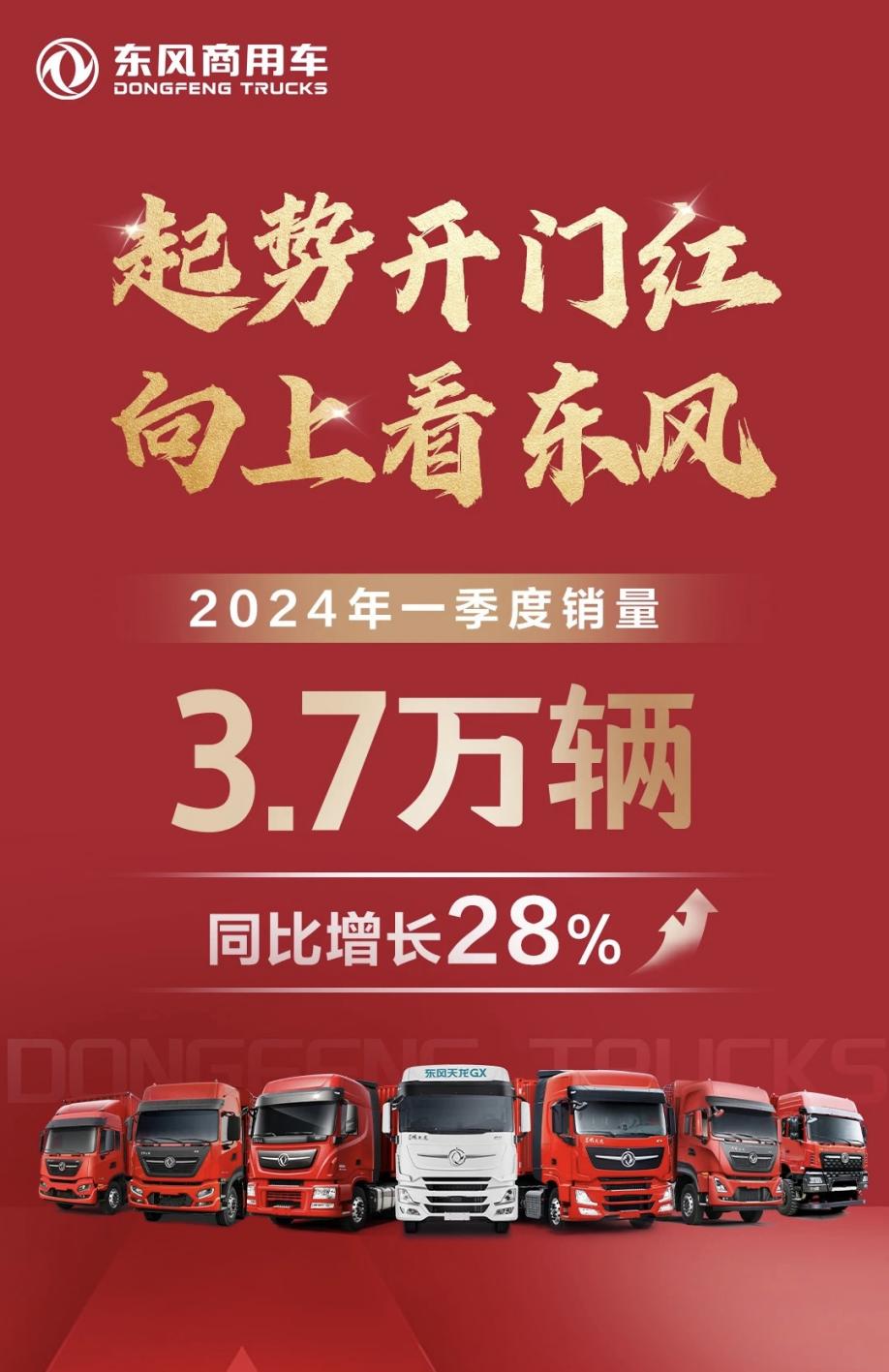 商用车领域,1-3月共销售14.5万辆,同比增长16.1%。其中,东风商用车1-3月销售3.7万辆,同比增长28.1%;东风轻型车1-3月销售4.5万辆,同比增长31.1%。