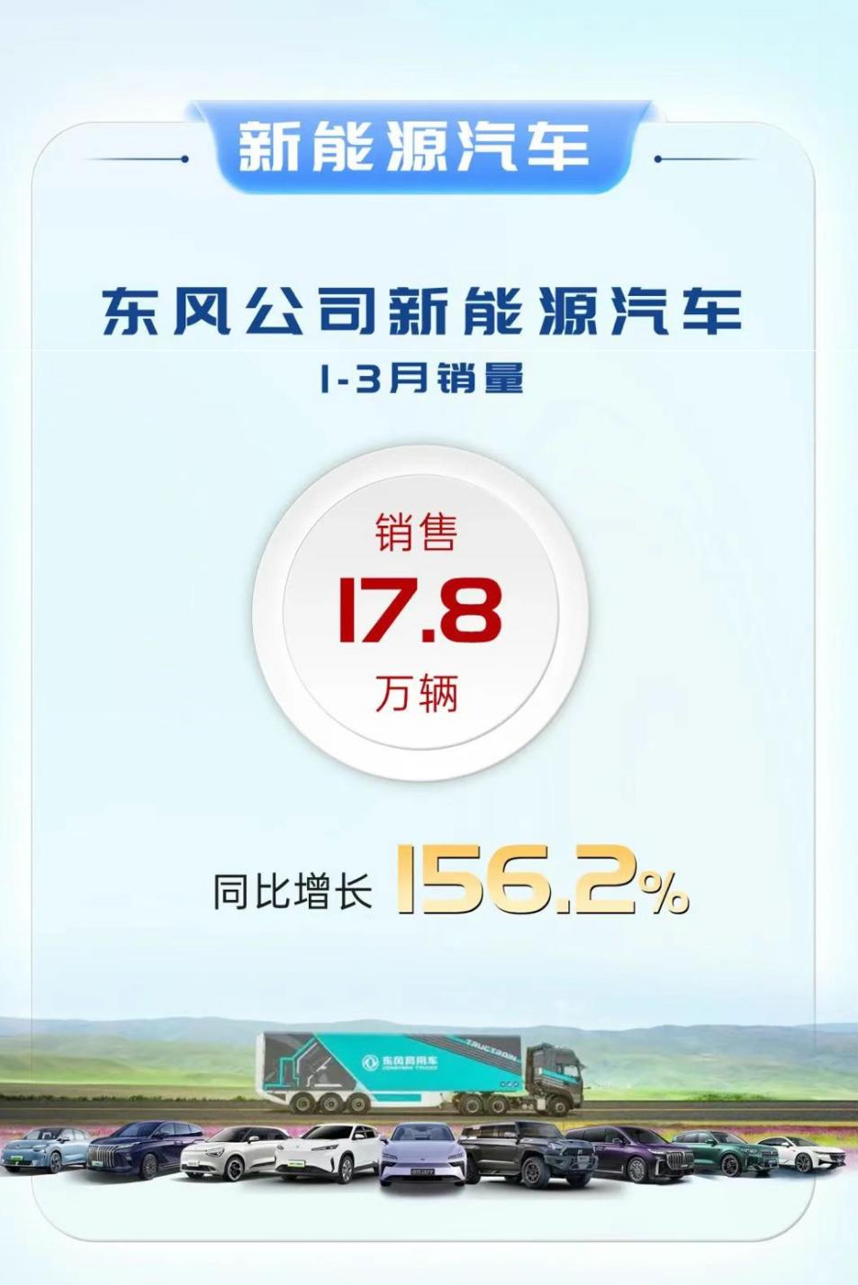 在竞争激烈的新能源汽车市场,1-3月,东风新能源汽车销量达到17.8万辆,同比增长156.2%;同时东风加速出海步伐,1-3月共出口汽车5.2万辆,同比增长19.4%。