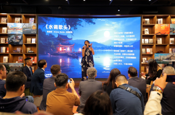 在思南公馆,热爱中国传统文化的法国姑娘——法国爱黎,也演唱了她自己用法语翻译的苏东坡的经典诗词《水调歌头·明月几时有》。
